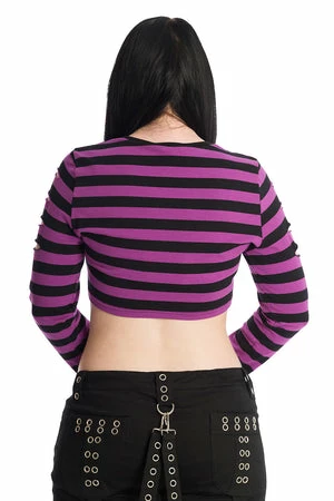 This bodacious gothic top from Banned Apparel, is an easy wardrobe option when pairing it with black pants! The style is available in purple or red color.