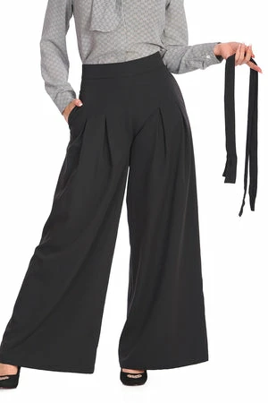 These high waist trousers have front and back pockets, pleats and straps detailing, a figure accentuating shape and it fastens with a zipper at the front.