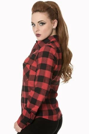 A kickass ladies lumberjack style, plaid shirt by Banned Apparel, the “no boundaries shirt”.
