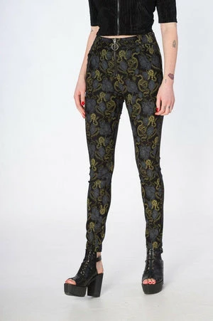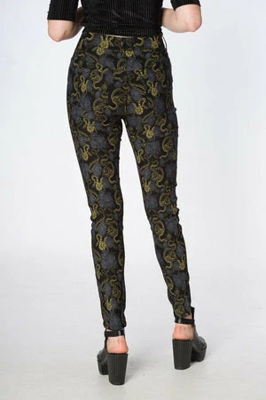 These skinny jeans have snake design, front pockets, a figure accentuating shape and it fastens with an O-ring zipper at the front.