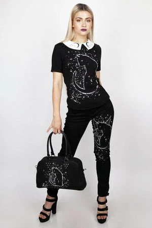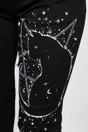 These high waisted skinny trousers have a galaxy cat splatter print and a figure accentuating shape.