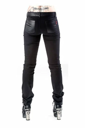 These striking ladies Gothic trousers from Queen of Darkness will accent your personal style and give you a look worthy of envy.