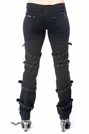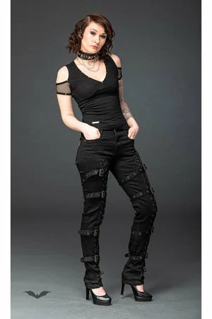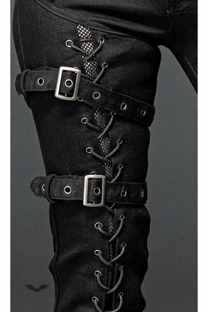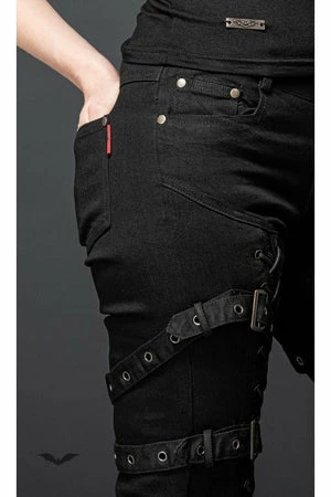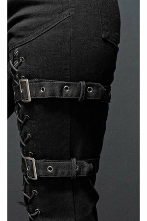 An awesome design for those who are gothic and love to rave. These baggy trousers have lace running down the front, with four buckles going down each leg. A wicked design for your wardrobe.