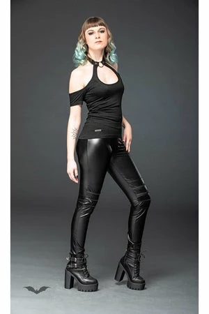 A wicked top for your inner witch, this top is created by Queen of Darkness. With open shoulders and an open back, this top has a large opening at the front with a ring keeping the top together.