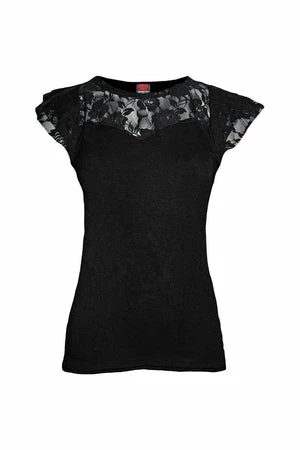 This vest is made from the highest quality, jersey and the print uses skin friendly, azo-free, reactive dyes. Featuring cap sleeves, lace layered shoulder details, and a figure accentuating shape.