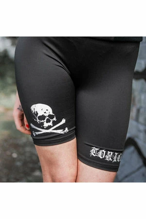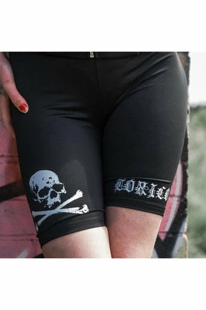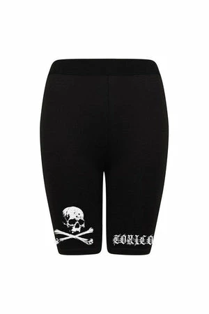 These women retro sports shorts have skull and Toxico tattoo print, soft brushed waistband and a flattering fit.