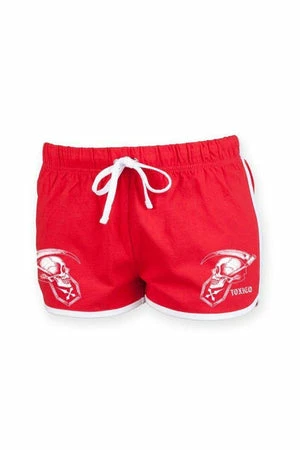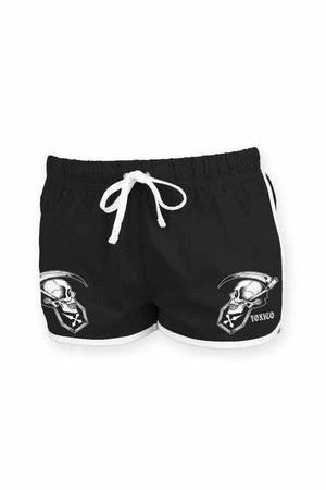 These women retro sports shorts have skull and Toxico tattoo print, an elasticated waist and a drawcord.