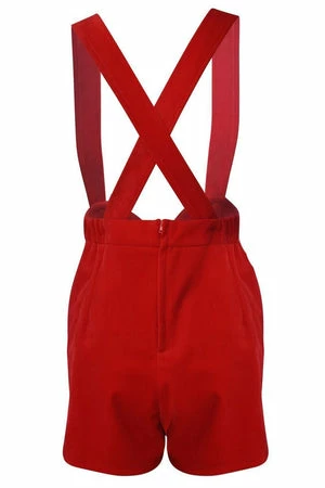 These 1970s shorts have a high-rise waist, functional side pockets. non-functional decorative buttons, back braces cross over detail, a flattering fit and it fastens with a zipper at the back.